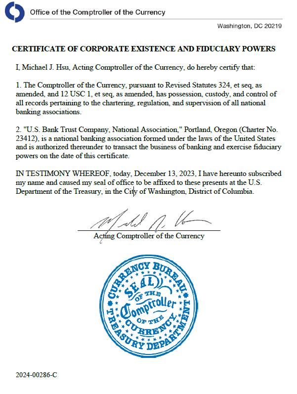 U.S. BANK TRUST COMPANY, NATIONAL ASSOCIATION