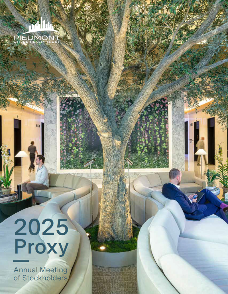 A. Our stockholders may obtain additional copies of this proxy statement, our Annual Report to Stockholders for fiscal 2024 and all other relevant documents filed by us with the SEC free of charge from our website at www.piedmontreit.com or by calling Shareowner Services at 866-354-3485.