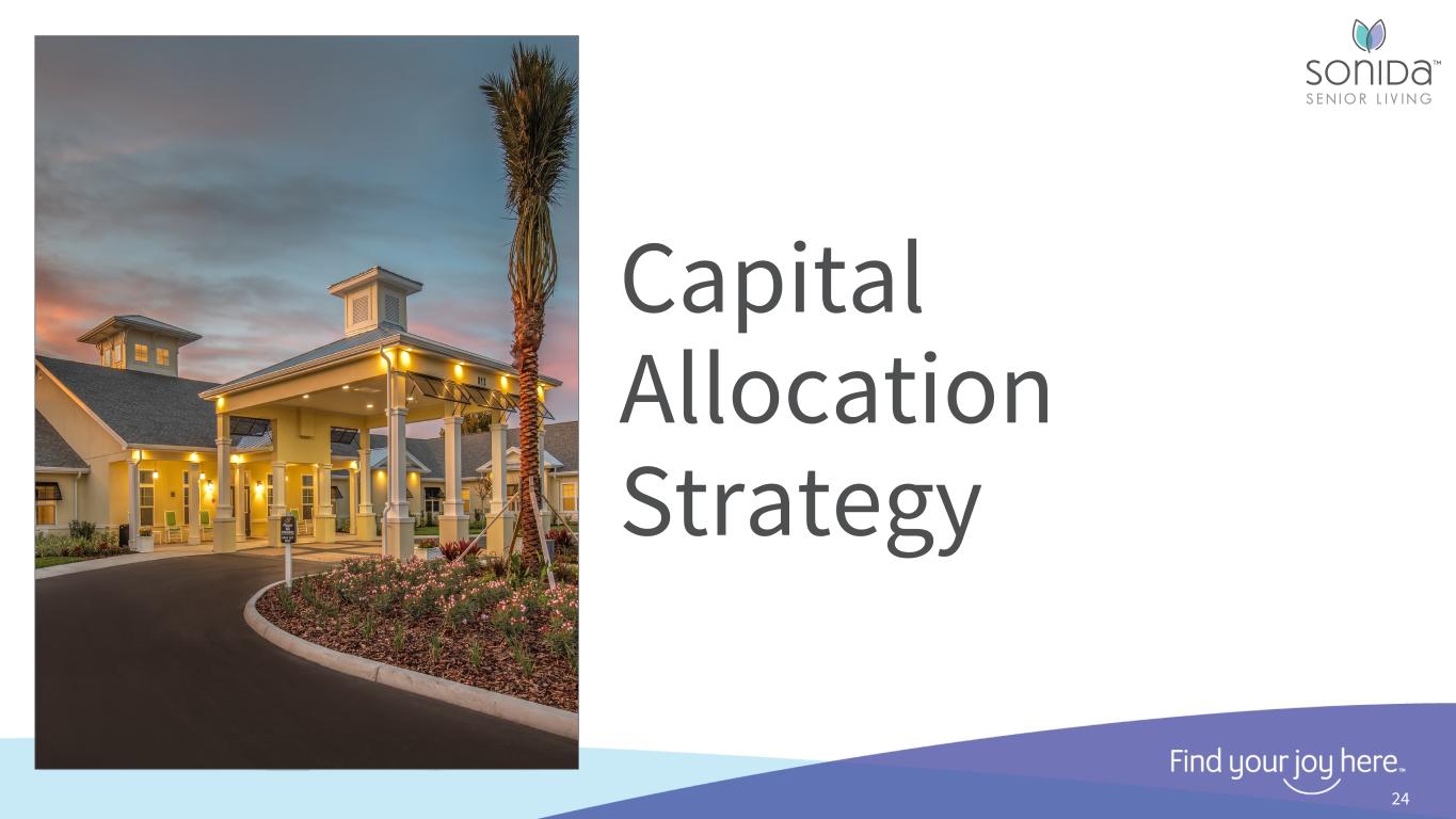 Capitalization Summary as of September 30, 2025 23 Note: Dollars in ‘000s except for share price, share count, and strike price. Numbers may vary due to rounding. (1) Weighted average interest rate. For revolving loans, the rate displayed represents a weighted average of all days with outstanding borrowings. (2) Variable exposure is synthetically limited with interest rate caps. Rates reflect all-in interest rate. (3) Total aggregate commitment under the Credit Facility of up to $150 million. (4) Excludes $13.1M of indebtedness in connection with one of the Repositioning communities, which is classified as held-for-sale on the Company’s consolidated balance sheet on September 30, 2025. Currently, the Company is under LOI to sell the community on or before December 31, 2025, its amended maturity date. (5) Includes recurring payments for financed insurance premiums of $6.2M throughout 2025. (6) Represents remaining required paydowns on the December 2024 Fannie Mae loan extension amendment. Common Shares/ Market Cap (41.3%) Convertible Preferred Equity (4.1%) Net Debt (54.2%) Non - Controlling Interest (0.4%) Components of Enterprise Value Convertible Preferred Summary Amount Outstanding 51,249$ Strike Price 40.00$ Shares (as-converted) 1,281,205 Maturity Perpetual Coupon 11.0% Debt Summary Lender / (# of Communities) Maturity Rate Type Interest Rate(1) Debt Outstanding Fannie Mae - (18 communities) 2029 Fixed 4.35% 218,079$ Fannie Mae MCF Fixed - (19) 2029 Fixed 5.13% 147,969$ Fannie Mae MCF Variable 2029 Variable/Capped (2) 6.14% 49,195$ Ally - (19) 2028 Variable/Capped (2) 6.93% 122,000$ Mortgage Lender #1 - (1) 2029 Variable/Capped (2) 6.00% 9,417$ Mortgage Lender #2 - (1) 2045 Fixed 3.95% 2,485$ Mortgage Lender #3 - (1) 2031 Fixed 3.00% 18,250$ Mortgage Lender #4 - (1) 2028 Variable 4.31% 9,000$ Insurance and Other 2026 Fixed/Floating 5.60% 3,993$ Consolidated JV #1 - (4) 2026+ Variable/Some Capped (2) 7.00% 21,690$ Secured Credit Facility (14) (3) 2027 Variable 6.92% 86,050$ Total / Wtd. Average (4) - - 5.50% 688,128$ Unconsolidated JV #1 - (4) 2027 Fixed 7.30% 11,449$ Non-Controlling Interest - - 7.65% (10,627)$ Total / Wtd. Average At Share - - 5.50% 688,949$ Enterprise Value Closing Stock Price $ 27.72 Common Shares Outstanding 18,798,287 Market Capitalization 521,089$ Convertible Preferred Equity 51,249$ Consolidated Debt 688,128 Pro-rata Unconsolidated JV Debt 11,449 Less: Cash (16,961) Net Debt 682,616$ Add: Non-Controlling Interest 5,387 Enterprise Value 1,260,340$ Debt Schedule - Consolidated Communities Year Amortization Paydown(6) Maturity Total - Year 2025 (4)(5) ($1,751) ($2,000) - ($3,751) 2026 ($4,108) ($3,000) ($15,290) ($22,398) 2027 ($3,301) ($3,000) ($92,346) ($98,647) 2028 ($3,395) - ($131,000) ($134,395) 2029 ($135) - ($408,426) ($408,561) Thereafter - - ($20,376) ($20,376) Totals ($12,690) ($8,000) ($667,438) ($688,128)