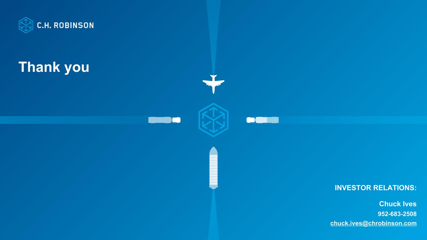 2024 INVESTOR DAY Thank you INVESTOR RELATIONS: Chuck Ives 952-683-2508 chuck.ives@chrobinson.com