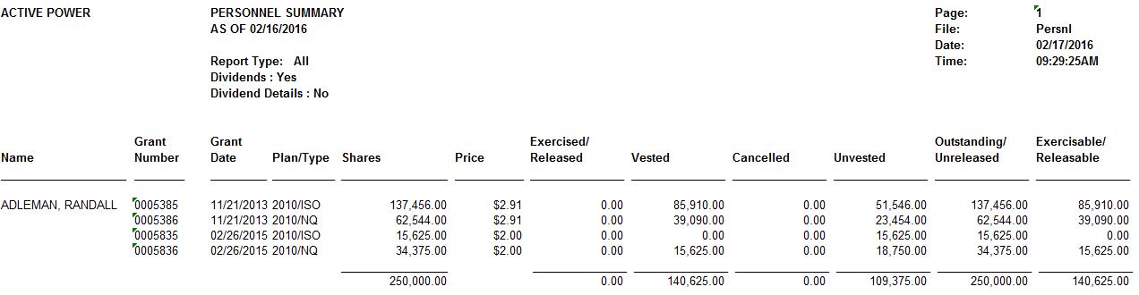 This Separation Agreement and Release of Claims is entered into between Active Power, Inc. (together with any affiliated companies collectively, “Company”) and Randall Adleman (“Employee”). In consideration of the mutual promises set forth below and as set forth in the separate Severance Benefits Agreement dated October 22, 2013 (“Severance Agreement”), Company and Employee agree as follows: