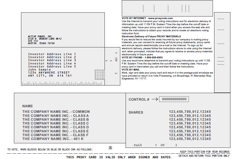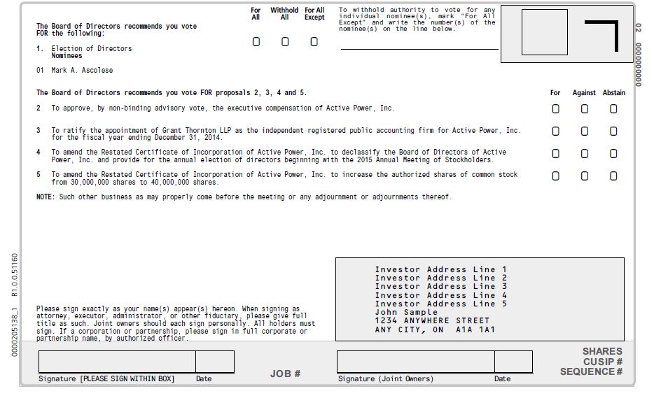 ACTIVE POWER, INC. PROXY
