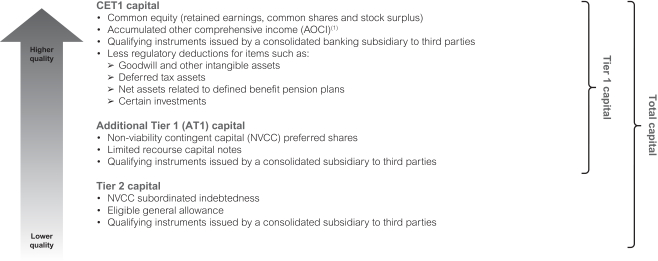 | (4) | Our capital ratios are calculated pursuant to the Office of the Superintendent of Financial Institution’s (OSFI’s) Capital Adequacy Requirements (CAR) Guideline and the leverage ratio is calculated pursuant to OSFI’s Leverage Requirements Guideline, all of which are based on the Basel Committee on Banking Supervision (BCBS) standards. For additional information, see the “Capital management” and “Liquidity risk” sections. |