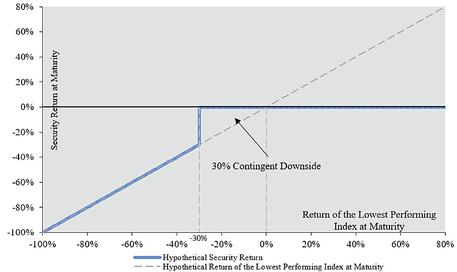 ●if the Ending Level of the Lowest Performing Index on the Final Calculation Day is greater than or equal to its Downside Threshold Level: $1,000; or ●if the Ending Level of the Lowest Performing Index on the Final Calculation Day is less than its Downside Threshold Level: $1,000 × Performance Factor of the Lowest Performing Index on the Final Calculation Day |