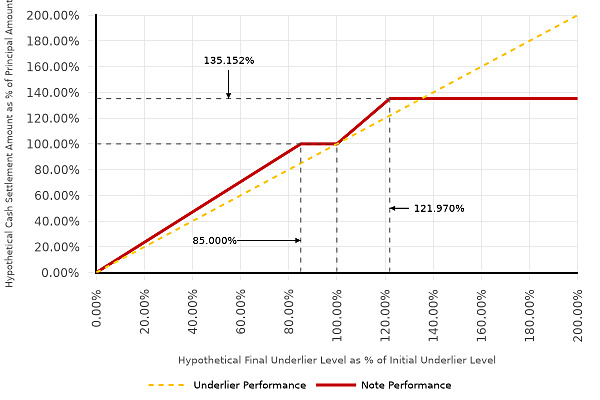 ●if the underlier return is zero or negative but not below -15.00% (i.e. the final underlier level is equal to or less than the initial underlier level, but not by more than 15.00%), $1,000; or