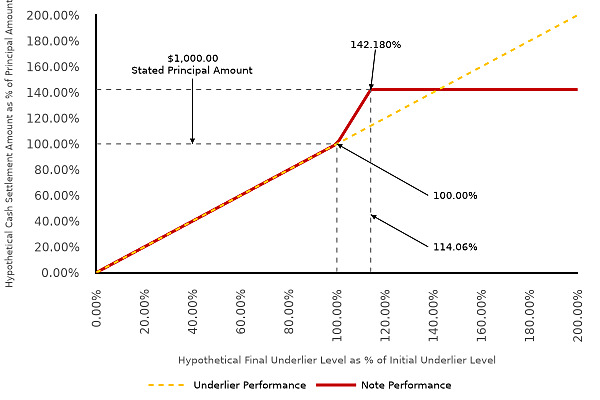 Purchase at amount other than the principal amount: The amount we will pay you on the stated maturity date for your notes will not be adjusted based on the issue price you pay for your notes, so if you acquire notes at a premium (or a discount) to the principal amount and hold them to the stated maturity date, it could affect your investment in a number of ways. The return on your investment in such notes will be lower (or higher) than it would have been had you purchased the notes at the principal amount. Additionally, the cap level would be triggered at a lower (or higher) percentage return than indicated below, relative to your initial investment. See “Additional Risk Factors Specific to Your Notes — If You Purchase Your Notes at a Premium to the Principal Amount, the Return on Your Investment Will Be Lower Than the Return on Notes Purchased at the Principal Amount and the Impact of Certain Key Terms of the Notes Will Be Negatively Affected” in this Pricing Supplement.