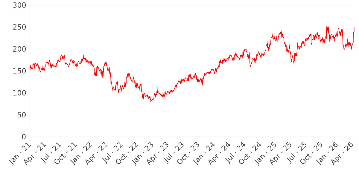 The following graphs set forth daily Closing Prices of the Underlying Stocks for the period from January 1, 2021 to April 16, 2026. On April 16, 2026, the Closing Price was $249.70 for the AMZN, $336.02 for the GOOGL and $676.87 for the META.
