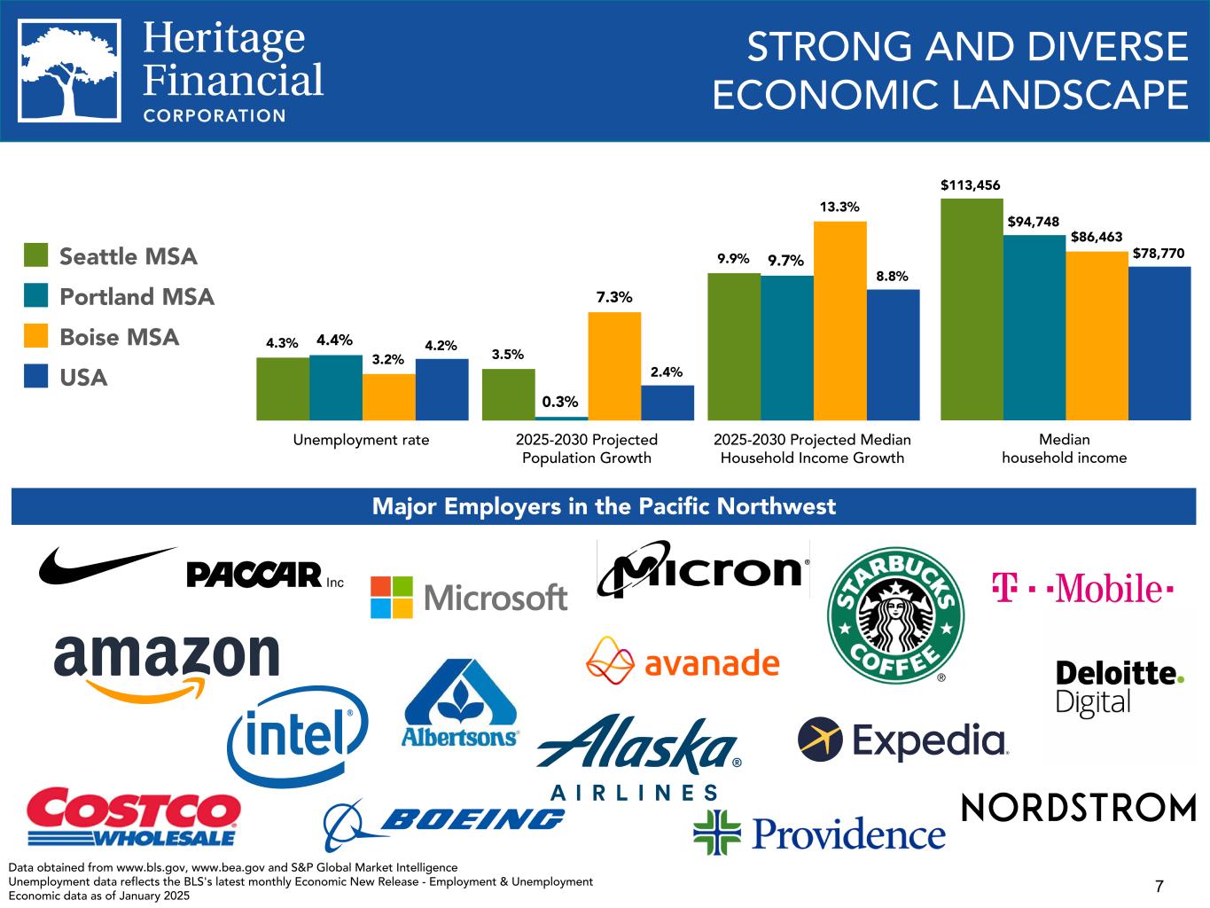 2 This presentation contains “forward-looking statements” within the meaning of the Private Securities Litigation Reform Act of 1995. Such statements often include words such as "believes," "expects," "anticipates," "estimates," “forecasts,” "intends," “plans,” “targets,” “potentially,” “probably,” “projects,” “outlook” or similar expressions or future or conditional verbs such as “may,” "will," “should,” "would," and "could," as well as the negative of such words. Forward-looking statements are not historical facts but instead represent management's current expectations and forecasts regarding future events, many of which are inherently uncertain and outside of our control. Actual results may differ, possibly materially, from those currently expected or projected in these forward-looking statements. Factors that could cause our actual results to differ materially from those described in the forward-looking statements include, but are not limited to, the following: • potential adverse impacts to economic conditions nationally or in our local market areas, other markets where Heritage Financial Corporation (the "Company") has lending relationships, or other aspects of the Company’s business operations or financial markets, including, without limitation, as a result of credit quality deterioration, pronounced and sustained reductions in real estate market values, employment levels, labor shortages and a potential recession or slowed economic growth; • changes in the interest rate environment, which could adversely affect our revenues and expenses, the value of assets and obligations, and the availability and cost of capital and liquidity; • the level and impact of inflation and the current and future monetary policies of the Board of Governors of the Federal Reserve System in response thereto; • legislative or regulatory changes that adversely affect our business, including changes in banking, securities, and tax law, in regulatory policies and principles, or the interpretation and prioritization of such rules and regulations; • effects on the U.S. economy resulting from the threat or implementation of, or changes to existing, policies and executive orders, including tariffs, immigration policy, regulatory and other governmental agencies, DEI and ESG initiatives, consumer protection, foreign policy, and tax regulations; • credit and interest rate risks associated with the Company’s businesses, customers, borrowings, repayment, investment, and deposit practices; • fluctuations in deposits and deposit concentrations; • liquidity issues, including our ability to borrow funds or raise additional capital, if necessary; • fluctuations in the value of our investment securities; • credit risks and risks from concentrations (by type of geographic area, collateral and industry) within our loan portfolio; • disruptions, security breaches, insider fraud, cybersecurity incidents or other adverse events, failures or interruptions in, or attacks on, our information technology systems or on the third-party vendors who perform critical processing functions for our business, including sophisticated attacks using artificial intelligence and similar tools; • technological changes implemented by us and other parties, including third-party vendors, which may be more difficult to implement or more expensive than anticipated or which may have unforeseen consequences to us and our customers, including the development and implementation of tools incorporating artificial intelligence; • increased competition in the financial services industry from non-banks such as credit unions and Fintech companies, including digital asset service providers; • our ability to adapt successfully to technological changes to compete effectively in the marketplace, including as a result of competition from other commercial banks, mortgage banking firms, credit unions, securities brokerage firms, insurance companies, and financial technology companies; • effects of critical accounting policies and judgments, including the use of estimates in determining fair value of certain of our assets, which estimates may prove to be incorrect and result in significant declines in valuation; • the commencement, costs, effects and outcome of litigation and other legal proceedings and regulatory actions against us or to which the Company may become subject; • loss of, or inability to attract, key personnel; • the effects of climate change, severe weather events, natural disasters, pandemics, epidemics and other public health crises, acts of war or terrorism, and other external events on our business and the businesses of our clients; • the impact of bank failures or adverse developments at other banks and related negative publicity about the banking industry in general on investor and depositor sentiment regarding the stability and liquidity of banks; and • our success at managing and responding to the risks involved in the foregoing items. You should also consider the risks, assumptions and uncertainties set forth in the “Risk Factors” section in our Annual Report on Form 10-K for the year ended December 31, 2024, as well as those set forth in other reports we file with or furnish to the Securities and Exchange Commission (the “SEC”) which are available on our website at www.hf-wa.com and on the SEC's website at www.sec.gov. These risks, assumptions and uncertainties should be considered in evaluating any forward-looking statements, and undue reliance should not be placed on such statements. Any forward-looking statement speaks only as of the date on which it is made, and the Company undertakes no obligation to update any forward-looking statement, whether to reflect events or circumstances after the date on which the statement is made, to reflect new information or the occurrence of unanticipated events, or otherwise. Except as otherwise indicated, this prese