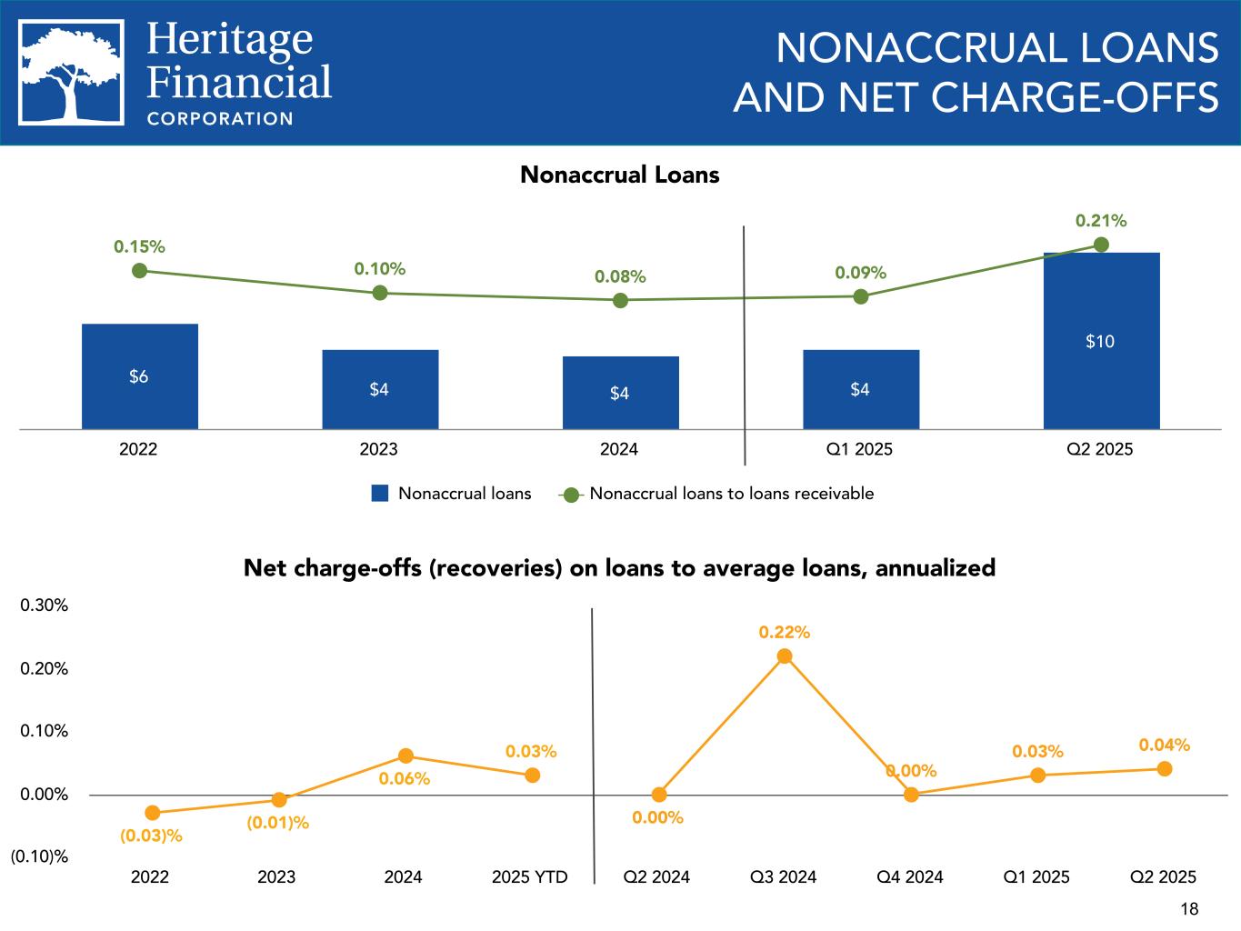 2 This presentation contains “forward-looking statements” within the meaning of the Private Securities Litigation Reform Act of 1995. Such statements often include words such as "believes," "expects," "anticipates," "estimates," “forecasts,” "intends," “plans,” “targets,” “potentially,” “probably,” “projects,” “outlook” or similar expressions or future or conditional verbs such as “may,” "will," “should,” "would," and "could," as well as the negative of such words. Forward-looking statements are not historical facts but instead represent management's current expectations and forecasts regarding future events, many of which are inherently uncertain and outside of our control. Actual results may differ, possibly materially, from those currently expected or projected in these forward-looking statements. Factors that could cause our actual results to differ materially from those described in the forward-looking statements include, but are not limited to, the following: • potential adverse impacts to economic conditions nationally or in our local market areas, other markets where Heritage Financial Corporation (the "Company") has lending relationships, or other aspects of the Company’s business operations or financial markets, including, without limitation, as a result of credit quality deterioration, pronounced and sustained reductions in real estate market values, employment levels, labor shortages and a potential recession or slowed economic growth; • changes in the interest rate environment, which could adversely affect our revenues and expenses, the value of assets and obligations, and the availability and cost of capital and liquidity; • the level and impact of inflation and the current and future monetary policies of the Board of Governors of the Federal Reserve System in response thereto; • legislative or regulatory changes that adversely affect our business, including changes in banking, securities, and tax law, in regulatory policies and principles, or the interpretation and prioritization of such rules and regulations; • effects on the U.S. economy resulting from the threat or implementation of, or changes to existing, policies and executive orders, including tariffs, immigration policy, regulatory and other governmental agencies, DEI and ESG initiatives, consumer protection, foreign policy, and tax regulations; • credit and interest rate risks associated with the Company’s businesses, customers, borrowings, repayment, investment, and deposit practices; • fluctuations in deposits and deposit concentrations; • liquidity issues, including our ability to borrow funds or raise additional capital, if necessary; • fluctuations in the value of our investment securities; • credit risks and risks from concentrations (by type of geographic area, collateral and industry) within our loan portfolio; • disruptions, security breaches, insider fraud, cybersecurity incidents or other adverse events, failures or interruptions in, or attacks on, our information technology systems or on the third-party vendors who perform critical processing functions for our business, including sophisticated attacks using artificial intelligence and similar tools; • technological changes implemented by us and other parties, including third-party vendors, which may be more difficult to implement or more expensive than anticipated or which may have unforeseen consequences to us and our customers, including the development and implementation of tools incorporating artificial intelligence; • increased competition in the financial services industry from non-banks such as credit unions and Fintech companies, including digital asset service providers; • our ability to adapt successfully to technological changes to compete effectively in the marketplace, including as a result of competition from other commercial banks, mortgage banking firms, credit unions, securities brokerage firms, insurance companies, and financial technology companies; • effects of critical accounting policies and judgments, including the use of estimates in determining fair value of certain of our assets, which estimates may prove to be incorrect and result in significant declines in valuation; • the commencement, costs, effects and outcome of litigation and other legal proceedings and regulatory actions against us or to which the Company may become subject; • loss of, or inability to attract, key personnel; • the effects of climate change, severe weather events, natural disasters, pandemics, epidemics and other public health crises, acts of war or terrorism, and other external events on our business and the businesses of our clients; • the impact of bank failures or adverse developments at other banks and related negative publicity about the banking industry in general on investor and depositor sentiment regarding the stability and liquidity of banks; and • our success at managing and responding to the risks involved in the foregoing items. You should also consider the risks, assumptions and uncertainties set forth in the “Risk Factors” section in our Annual Report on Form 10-K for the year ended December 31, 2024, as well as those set forth in other reports we file with or furnish to the Securities and Exchange Commission (the “SEC”) which are available on our website at www.hf-wa.com and on the SEC's website at www.sec.gov. These risks, assumptions and uncertainties should be considered in evaluating any forward-looking statements, and undue reliance should not be placed on such statements. Any forward-looking statement speaks only as of the date on which it is made, and the Company undertakes no obligation to update any forward-looking statement, whether to reflect events or circumstances after the date on which the statement is made, to reflect new information or the occurrence of unanticipated events, or otherwise. Except as otherwise indicated, this prese