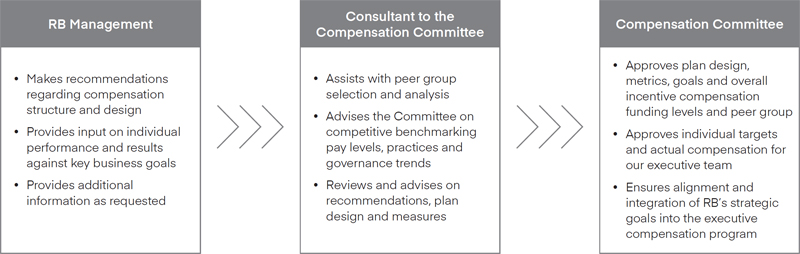 The leadership appointments made this year underscore the priority the Board places on retaining, attracting and developing top talent. Consistent with these objectives and RB Global’s transformation in scale and reach, the Board’s Compensation Committee reviewed and adjusted the pay structure for our executive officers. We invite you to read more in the letter from our Compensation Committee in the accompanying proxy statement.