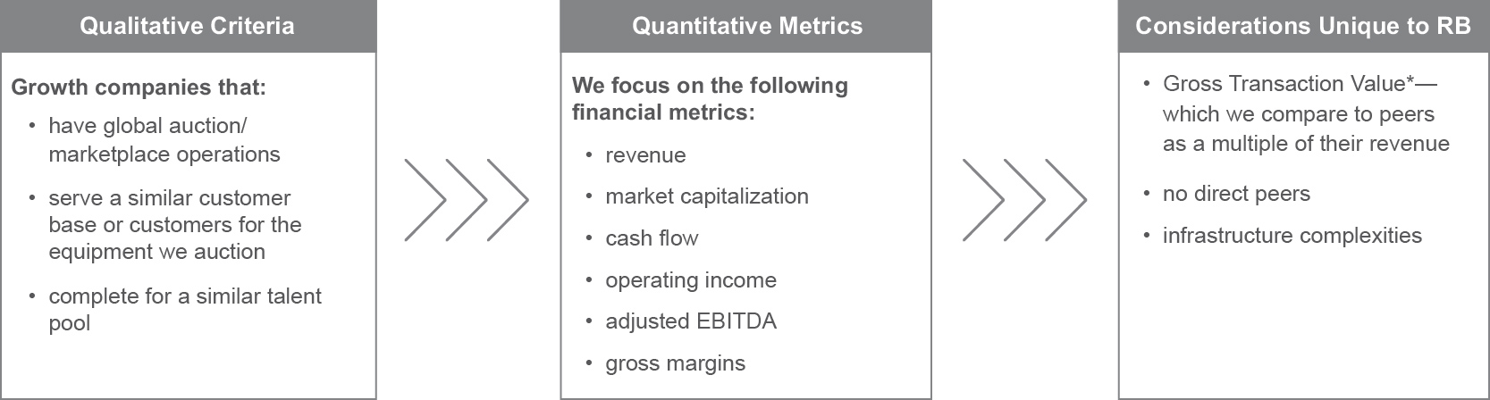 The leadership appointments made this year underscore the priority the Board places on retaining, attracting and developing top talent. Consistent with these objectives and RB Global’s transformation in scale and reach, the Board’s Compensation Committee reviewed and adjusted the pay structure for our executive officers. We invite you to read more in the letter from our Compensation Committee in the accompanying proxy statement.