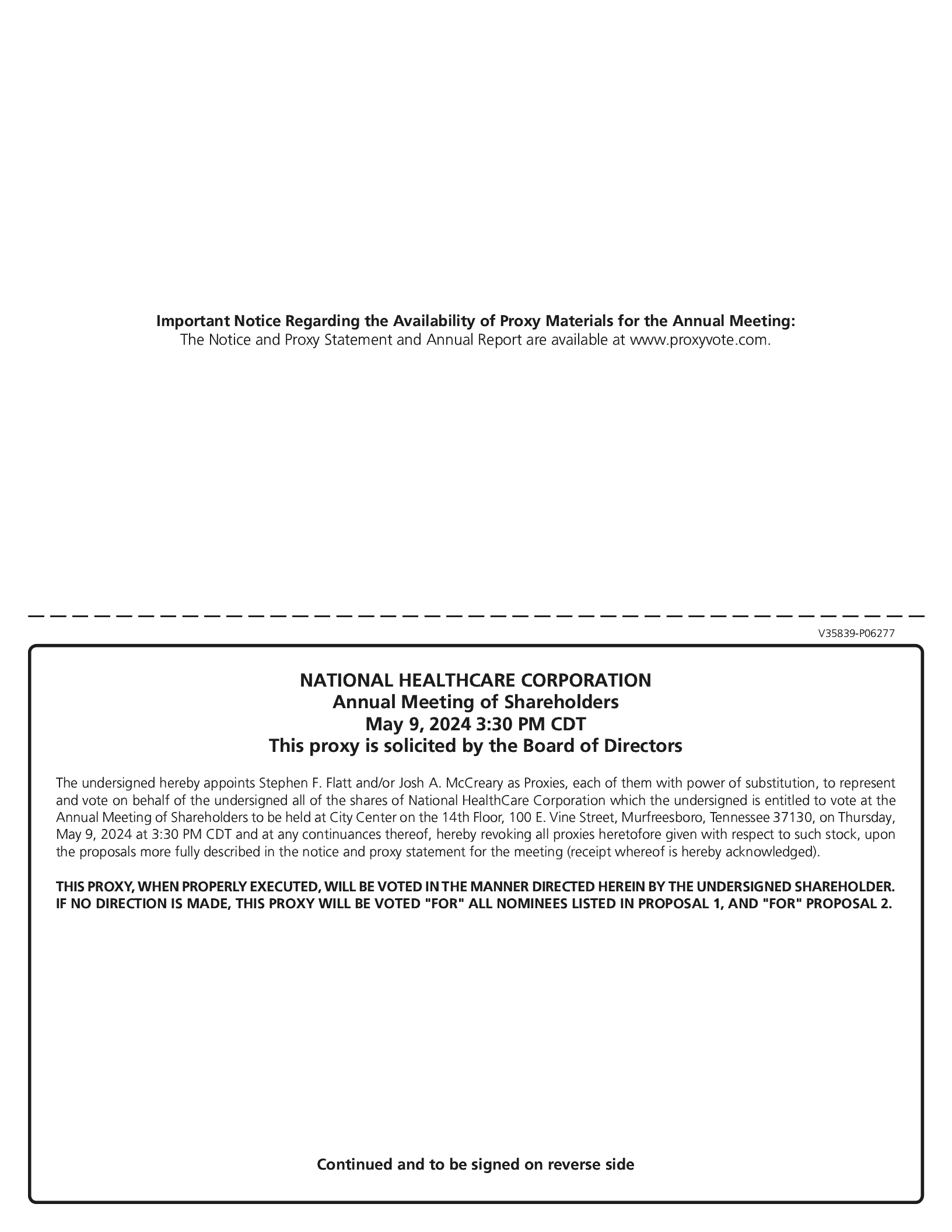 On January 1, 2007, a 15-year lease extension began which included three additional five-year renewal options. In December 2012, NHC extended the lease agreement through the first of the three additional five-year renewal options, which extended the lease date through 2026. The two additional five-year renewal options on the lease still remain.