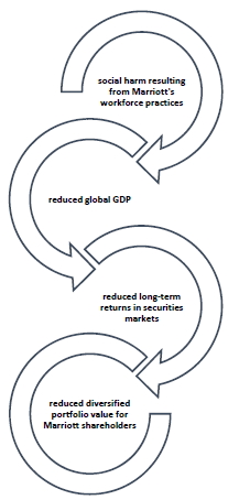 As shown in Figure 1, Marriott’s choices that contribute to a financially insecure labor force threaten its diversified shareholders’ financial returns, even if those decisions might benefit Marriott financially.