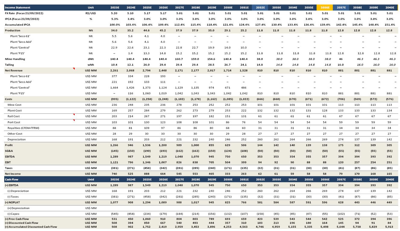 The overall economics for the project’s reserves have been evaluated by CSN using conventional discounted cash flow methods. The production schedules, capital expenditures and operating costs have been previously informed in the Company’s response letter dated January 8, 2024.