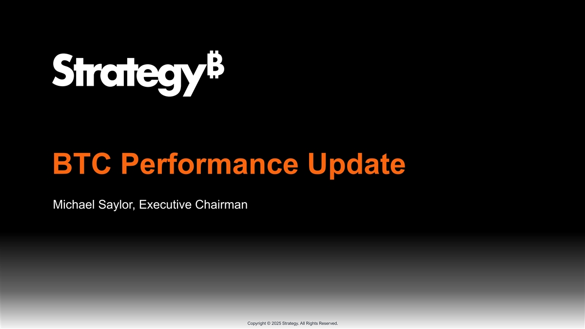 BTC Performance Update Michael Saylor, Executive Chairman Copyright © 2025 Strategy. All Rights Reserved.