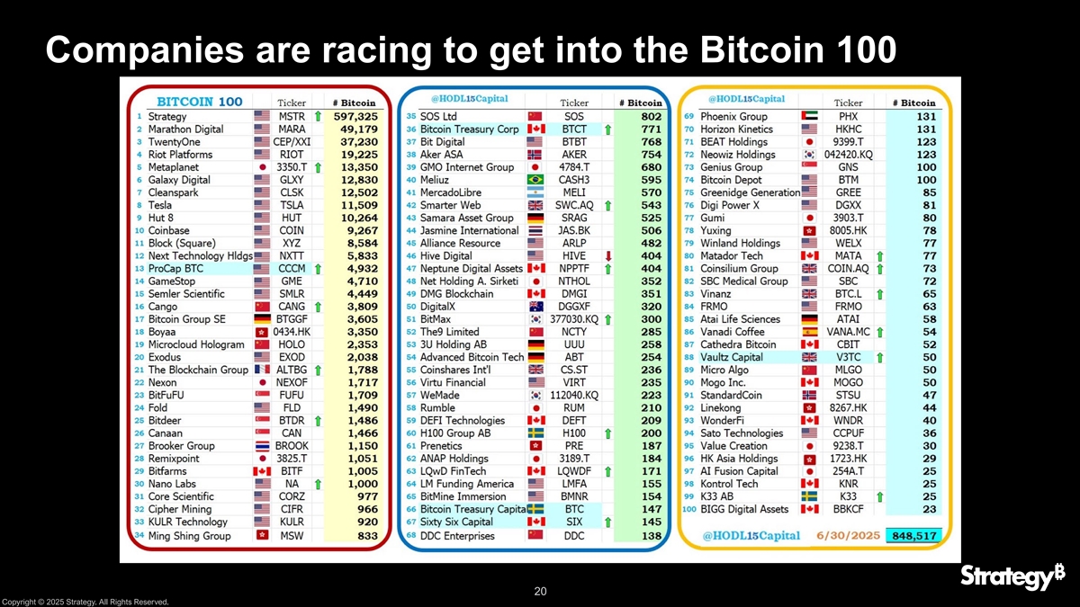 Companies are racing to get into the Bitcoin 100 20 Copyright © 2025 Strategy. All Rights Reserved.