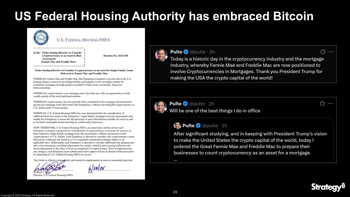 US Federal Housing Authority has embraced Bitcoin 24 Copyright © 2025 Strategy. All Rights Reserved.