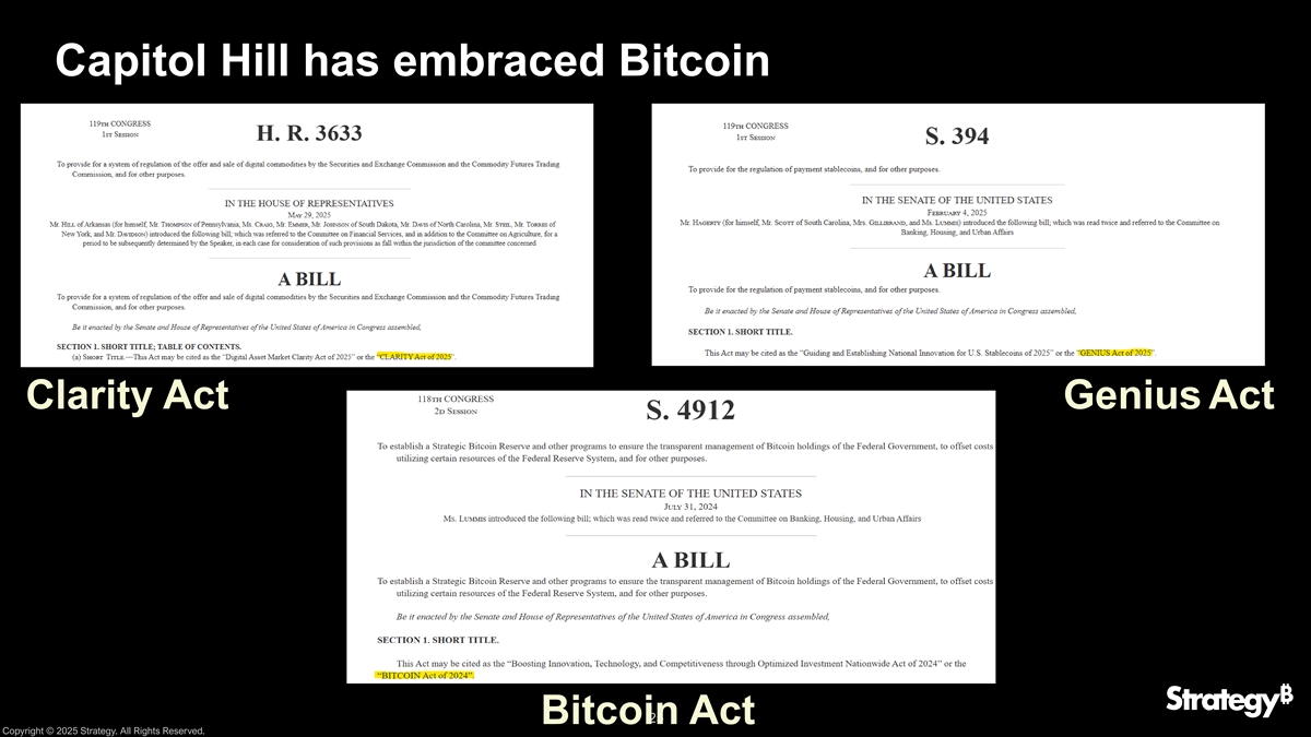Capitol Hill has embraced Bitcoin Clarity Act Genius Act 25 Bitcoin Act Copyright © 2025 Strategy. All Rights Reserved.