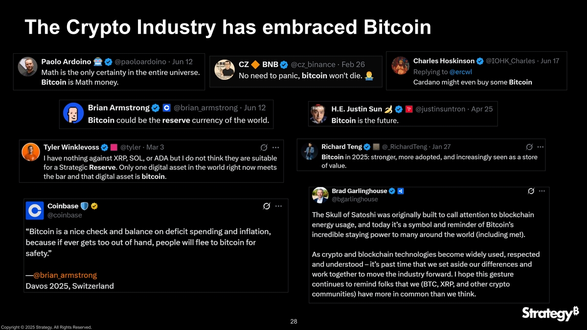 The Crypto Industry has embraced Bitcoin 28 Copyright © 2025 Strategy. All Rights Reserved.