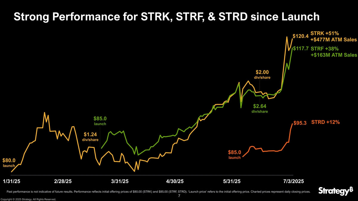 You’ll see the performance of all of our preferreds, really, were awesome, during the second quarter. Since inception, STRK has now gained 51% off an $80 launch price, to $120. We have also added $477 million of value to STRK through ATM sales.