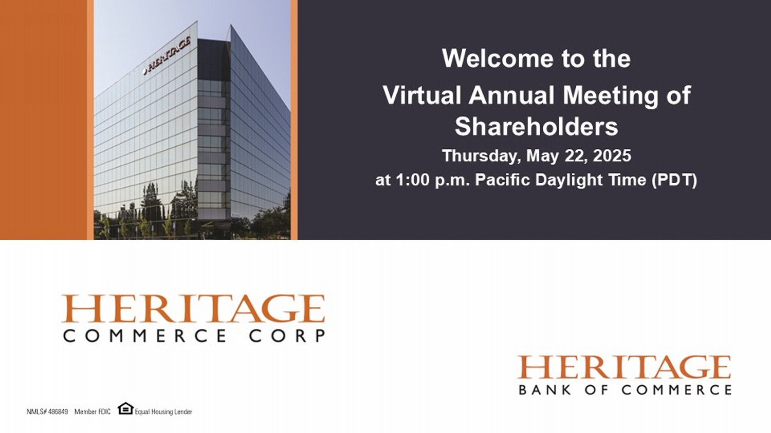 Welcome to the Virtual Annual Meeting of Shareholders Thursday, May 22, 2025 at 1:00 p.m. Pacific Daylight Time (PDT)
