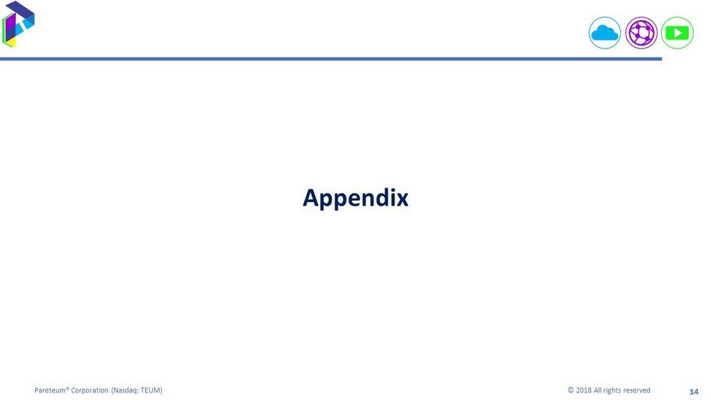 14 Pareteum® Corporation ( Nasdaq: TEUM) © 2018 All rights reserved 14 Appendix