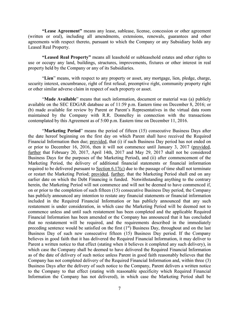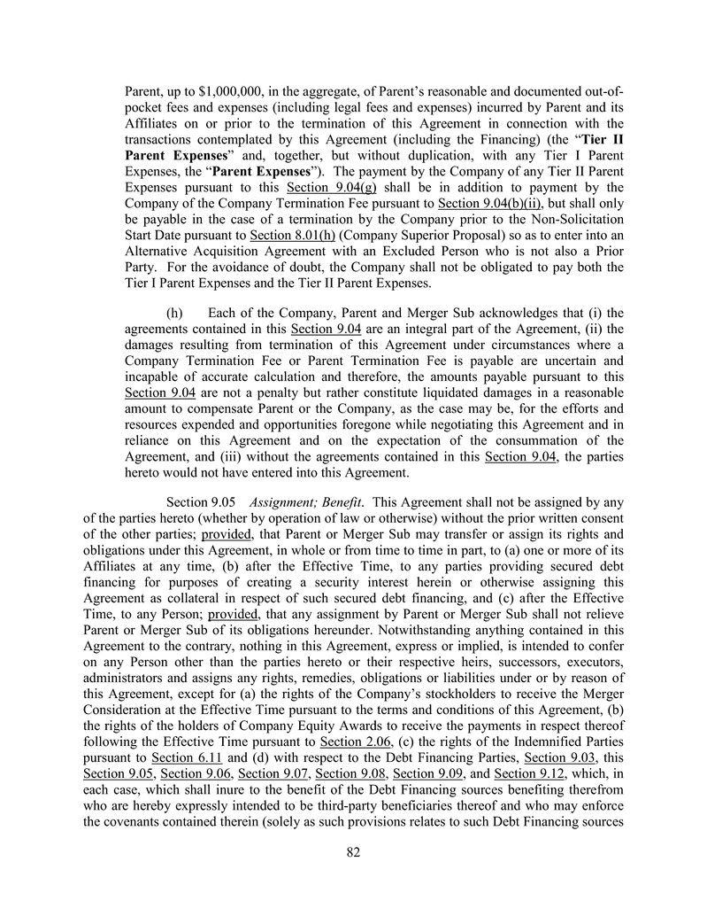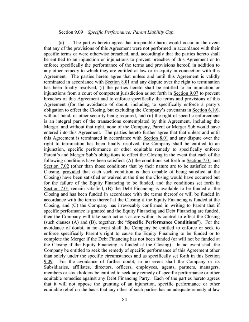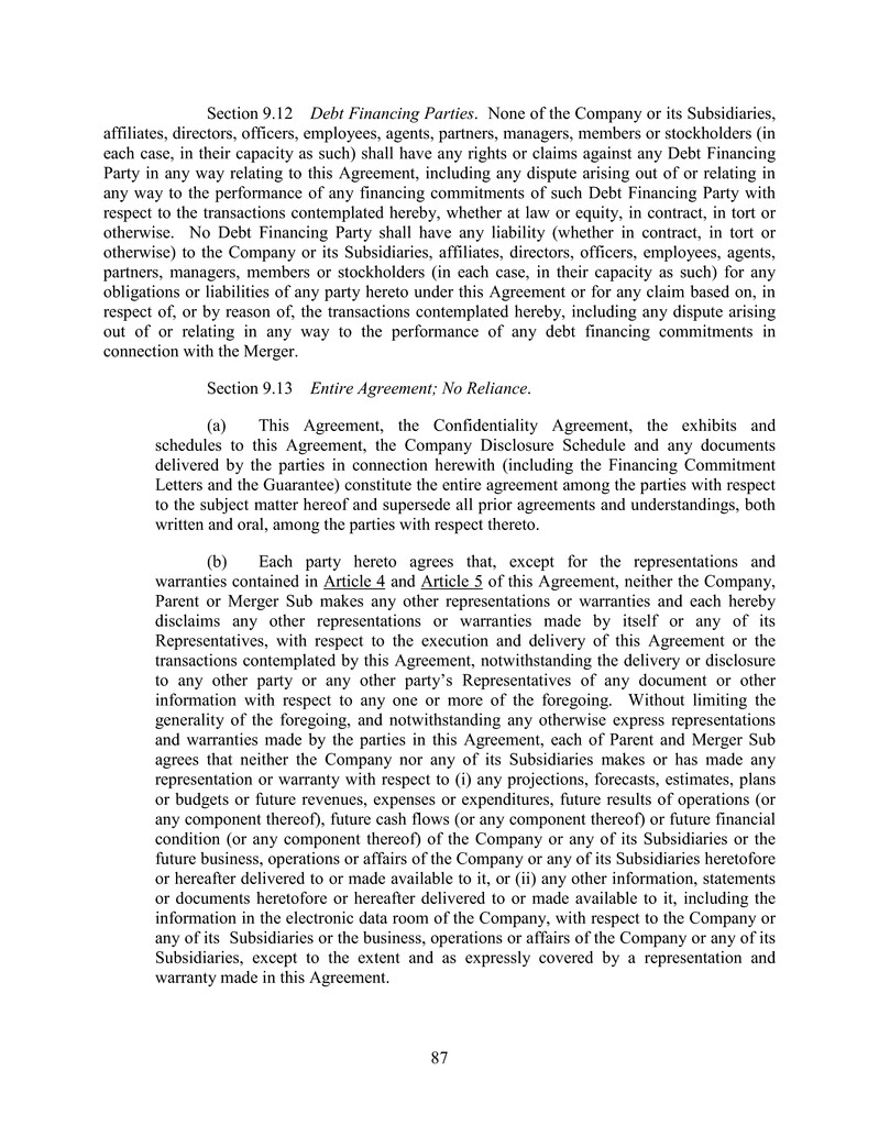 Section 9.12 Debt Financing Parties. None of the Company or its Subsidiaries,