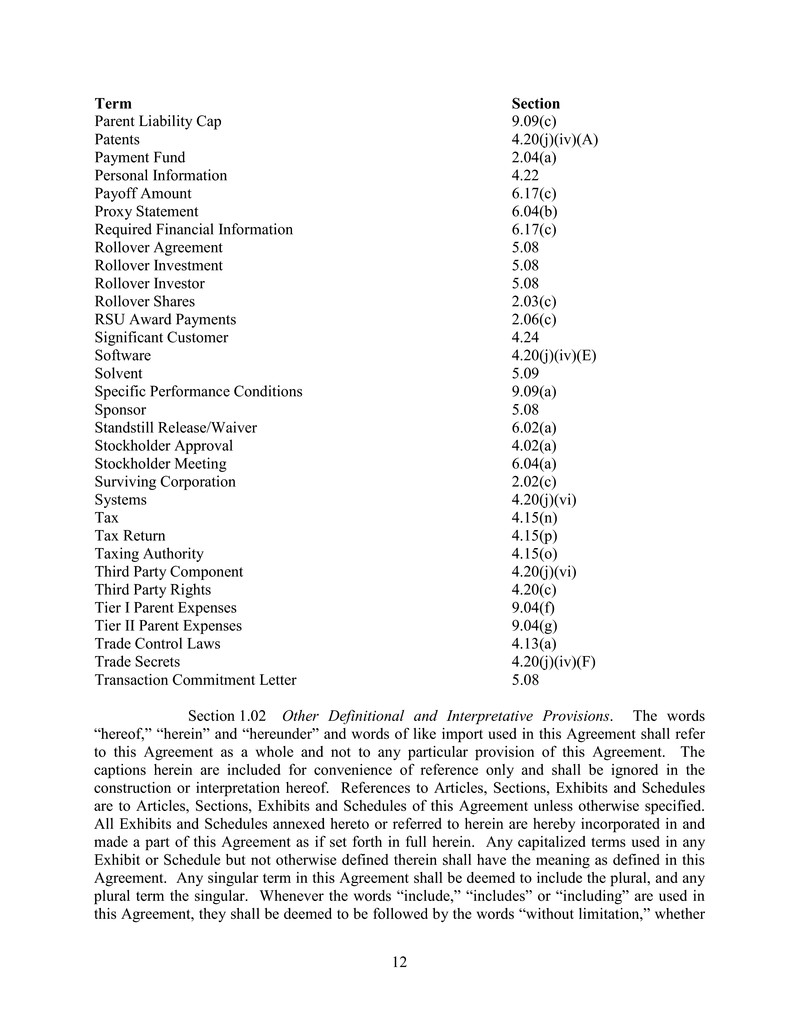 Section 1.02 Other Definitional and Interpretative Provisions ...................................... 12