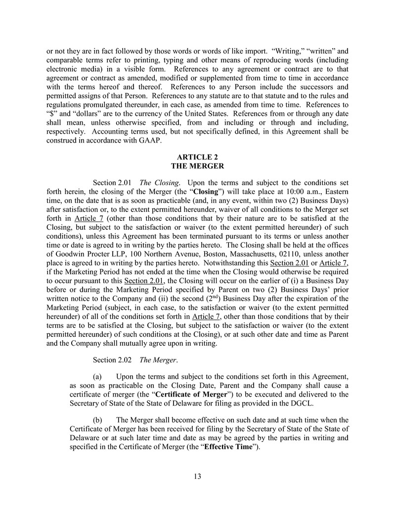 ARTICLE 2 THE MERGER ........................................................................................................ 13