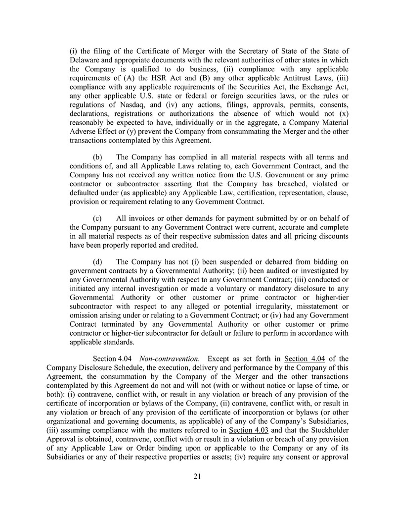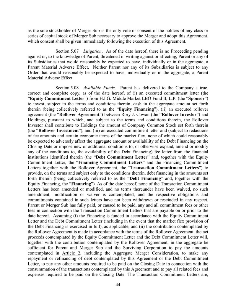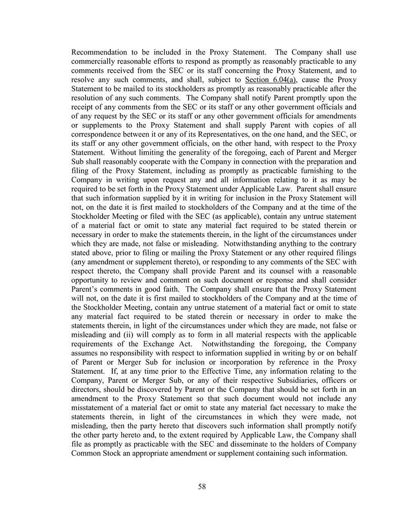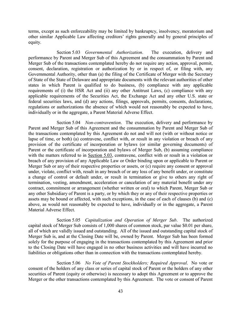 Section 5.06 No Vote of Parent Stockholders; Required Approval ............................... 43