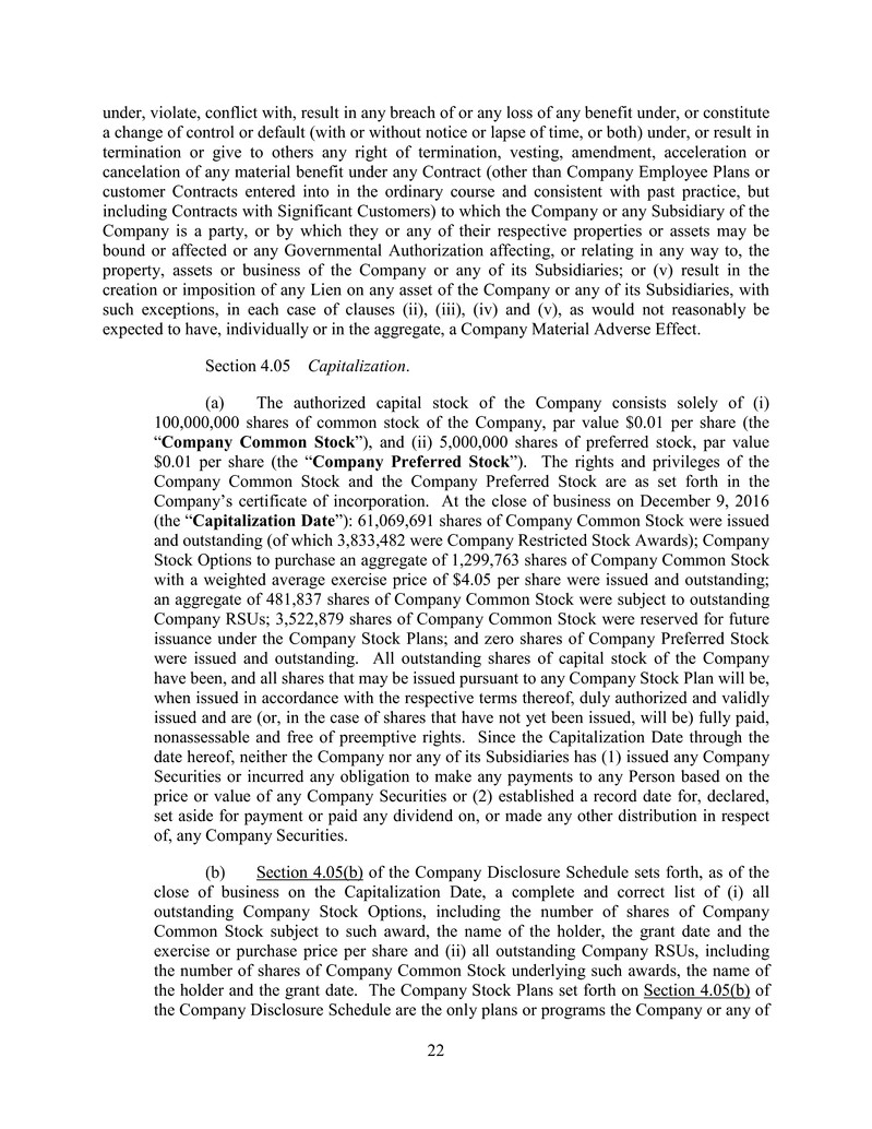 Section 5.05 Capitalization and Operation of Merger Sub ............................................ 43