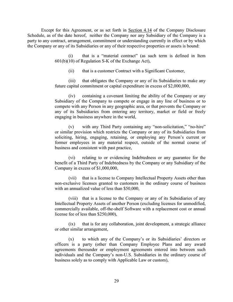 Section 5.10 Absence of Certain Agreements ............................................................... 46