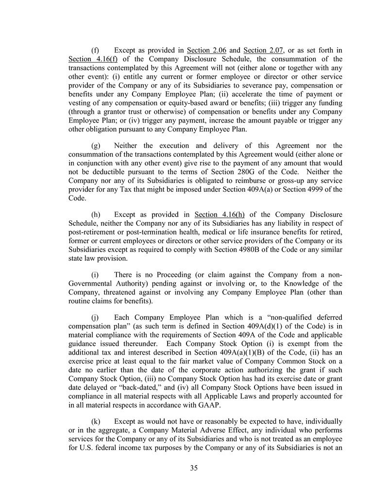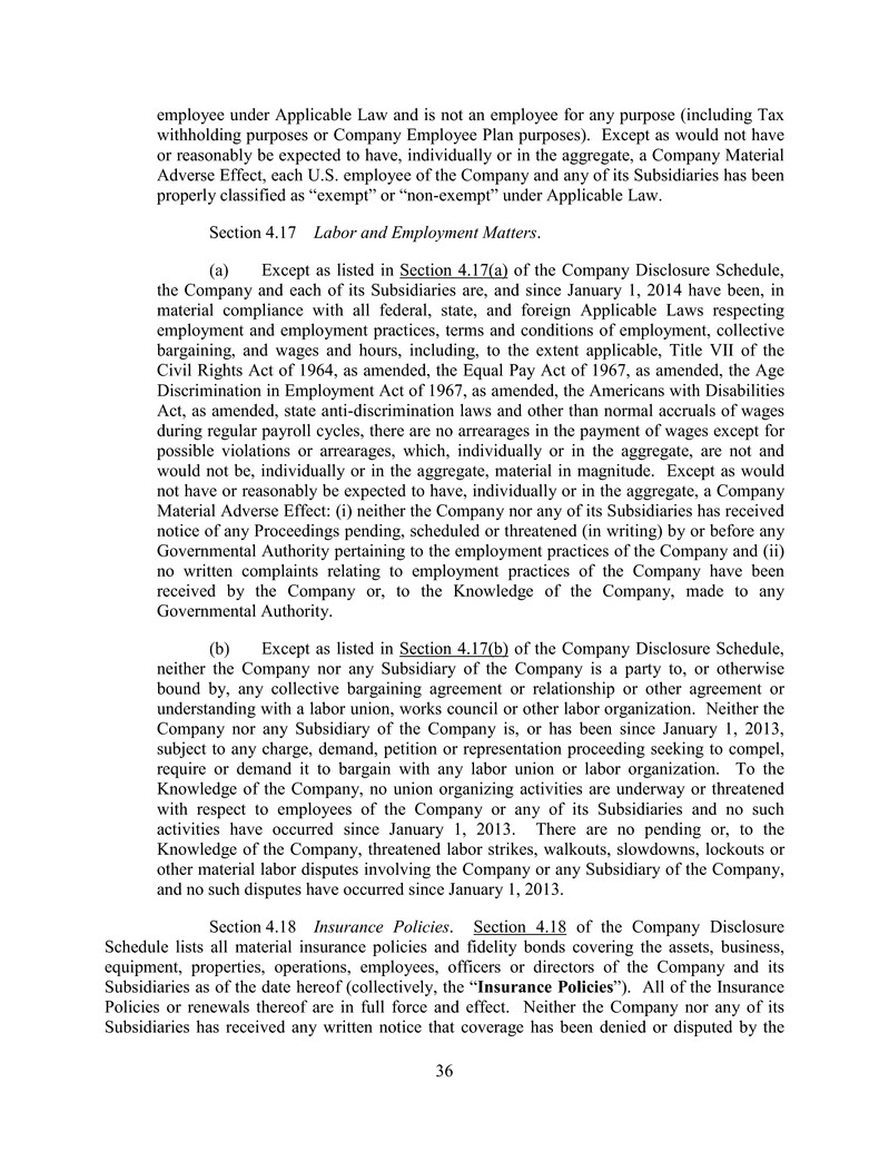 Section 4.17 Labor and Employment Matters ............................................................... 36