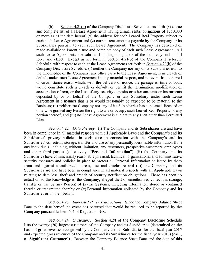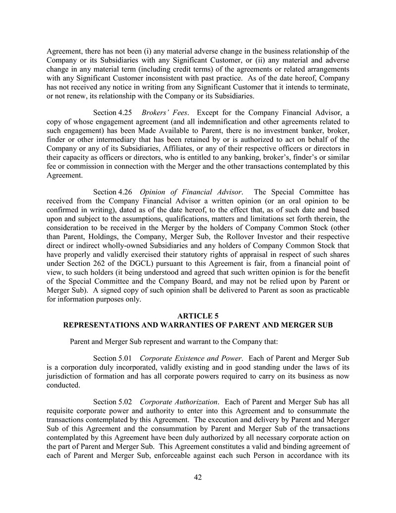 Section 4.26 Opinion of Financial Advisor ................................................................... 42