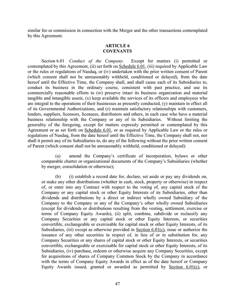 Section 6.01 Conduct of the Company .......................................................................... 47