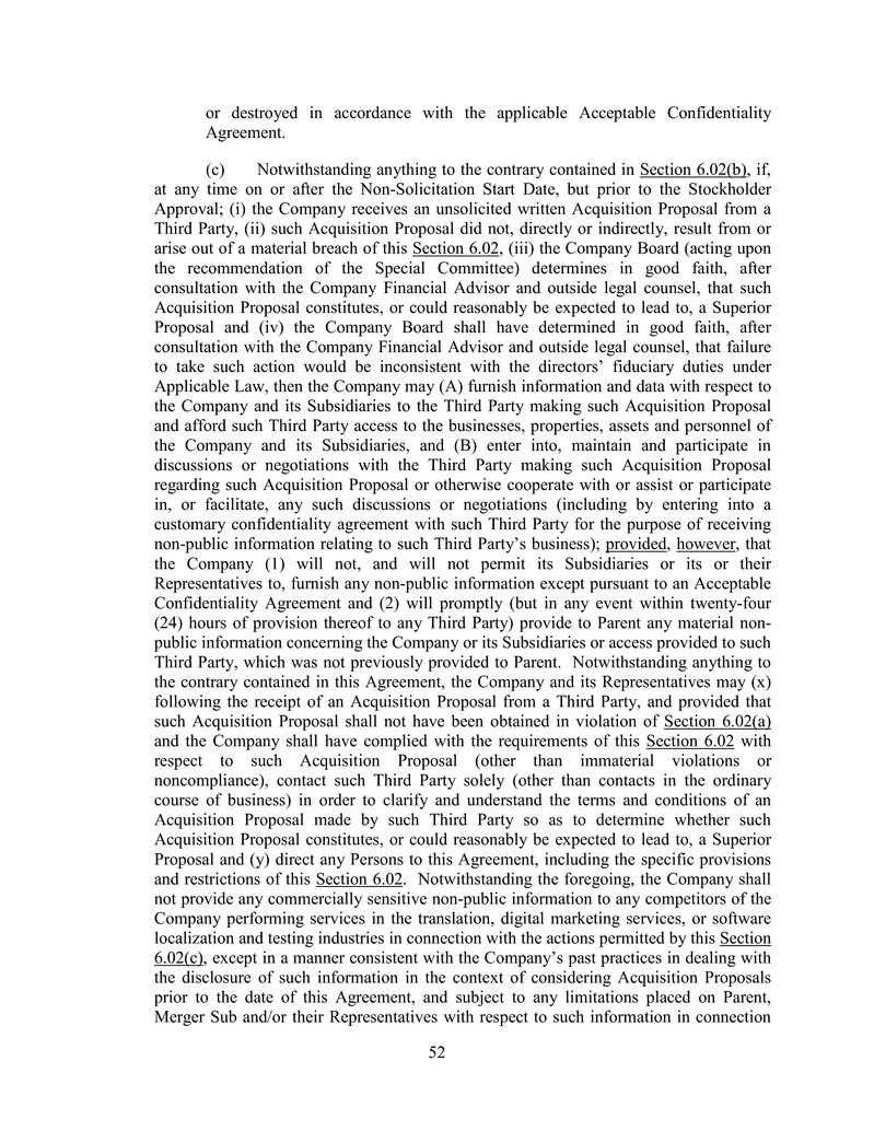 Section 6.02 Go-Shop; Unsolicited Proposals ............................................................... 50