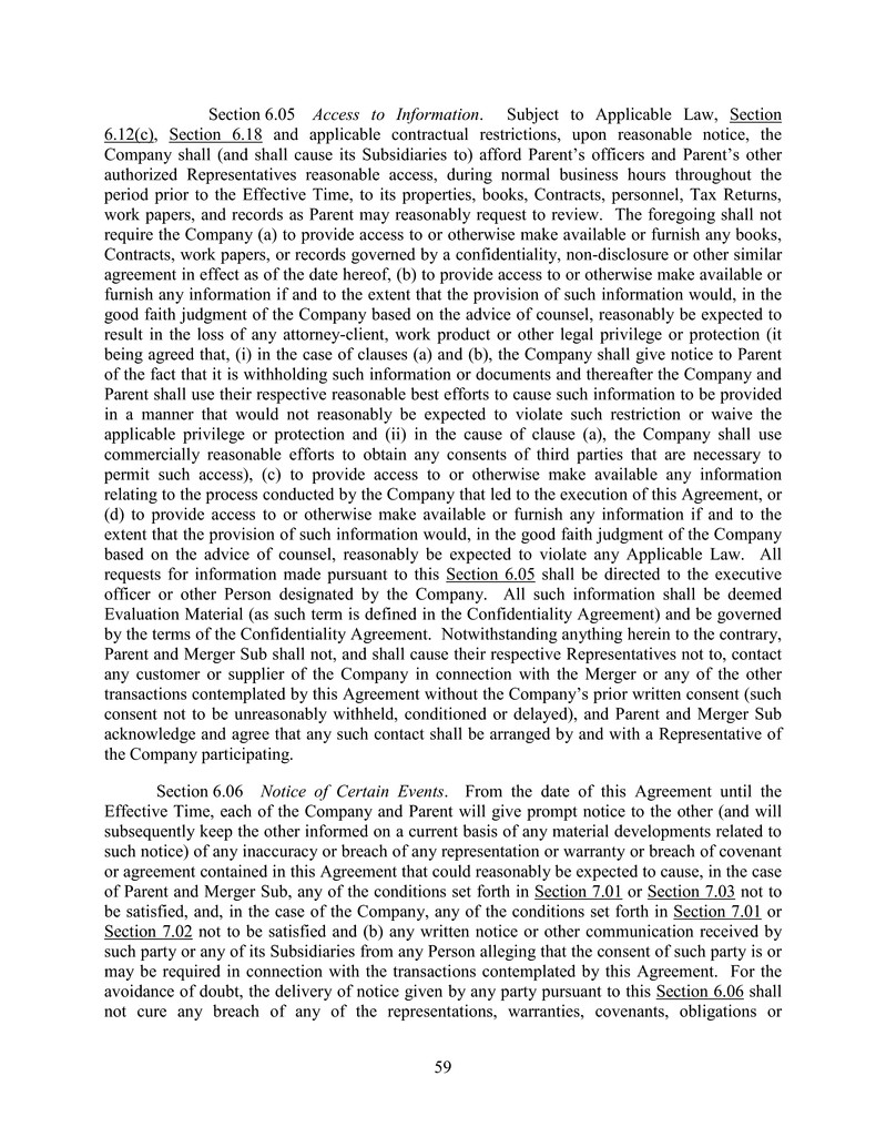 Section 6.06 Notice of Certain Events ........................................................................... 59