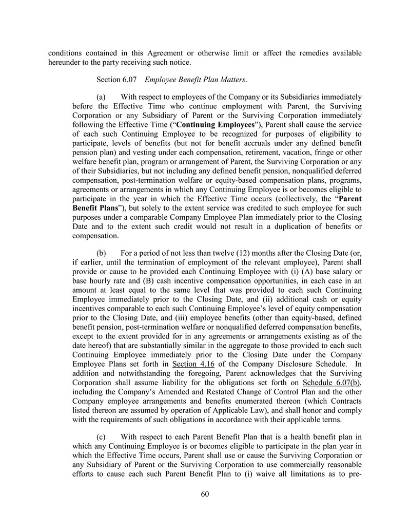 Section 6.07 Employee Benefit Plan Matters ................................................................ 60