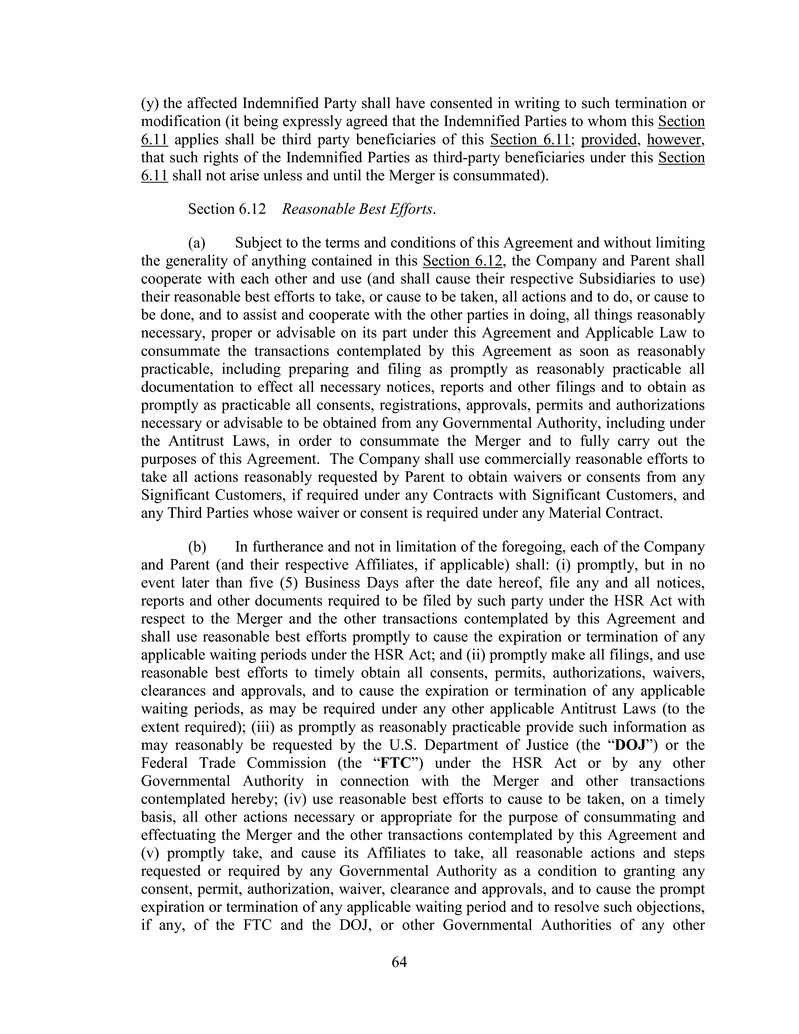 Section 6.12 Reasonable Best Efforts ............................................................................ 64