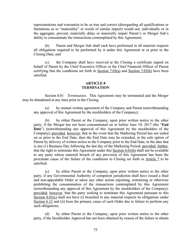 and warranties made by the parties in this Agreement, each of Parent and Merger Sub