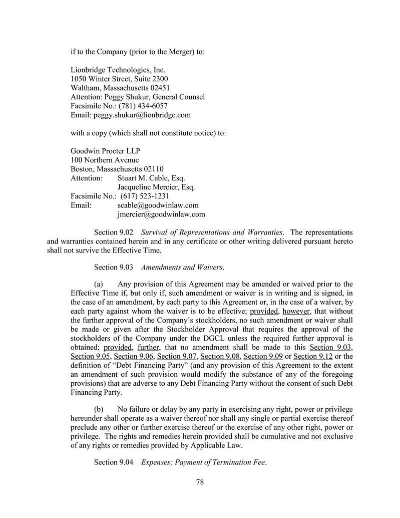 Lionbridge, LBT Acquisition, or any of their respective subsidiaries or affiliates. Moreover,
