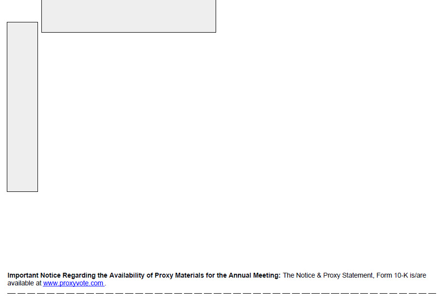 VOTE BY INTERNET - www.proxyvote.com Use the Internet to transmit your voting instructions and for electronic delivery of information up until 11:59 P.M. Eastern Time the day before the cut-off date or meeting date. Have your proxy card in hand when you access the web site and follow the instructions to obtain your records and to create an electronic voting instruction form. ELECTRONIC DELIVERY OF FUTURE PROXY MATERIALS If you would like to reduce the costs incurred by our company in mailing proxy materials, you can consent to receiving all future proxy statements, proxy cards and annual reports electronically via e-mail or the Internet. To sign up for electronic delivery, please follow the instructions above to vote using the Internet and, when prompted, indicate that you agree to receive or access proxy materials electronically in future years. VOTE BY PHONE - 1-800-690-6903 Use any touch-tone telephone to transmit your voting instructions up until 11:59 P.M. Eastern Time the day before the cut-off date or meeting date. Have your proxy card in hand when you call and then follow the instructions. VOTE BY MAIL Mark, sign and date your proxy card and return it in the postage-paid envelope we have provided or return it to Vote Processing, c/o Broadridge, 51 Mercedes Way, Edgewood, NY 11717.