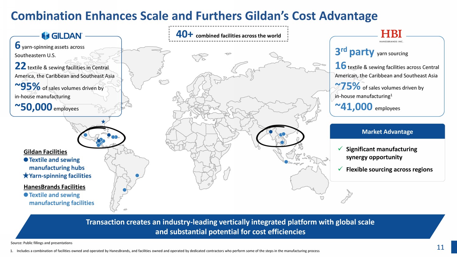 | · | State-of-the-art low-cost vertically integrated manufacturing network. The combined global supply chain is expected to enhance Gildan’s low-cost advantage, along with the opportunity for value creation by driving manufacturing synergies. Gildan will utilize its best-in-class low-cost manufacturing structure and operational expertise, efficiently reallocate production volumes across geographies, and optimize its network, distribution and logistics infrastructure, leaning on its proven operational capabilities. |