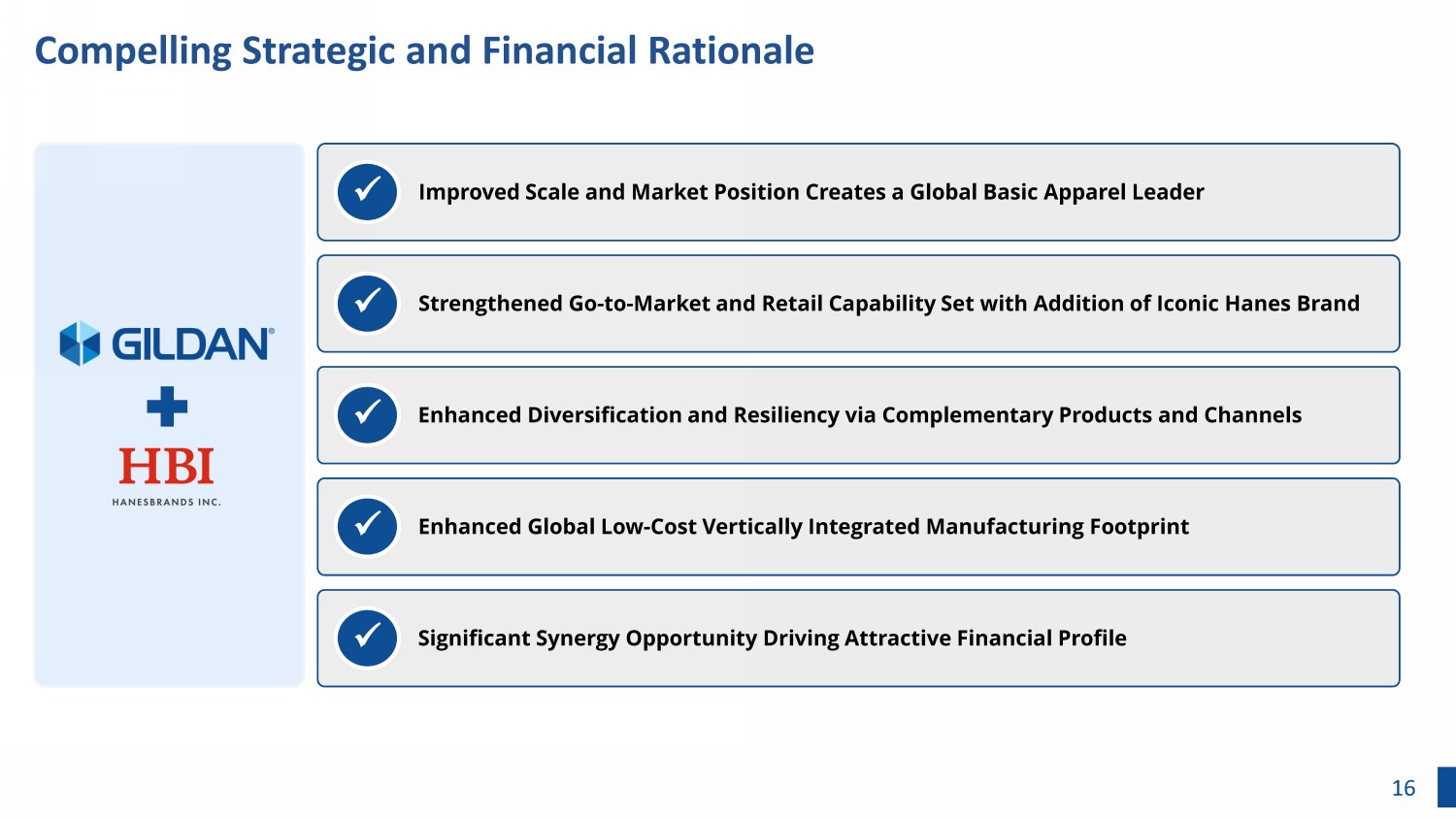 Compelling Strategic and Financial Rationale: combining complementary strengths creates a global basic apparel leader with proven operational expertise to drive significant value creation