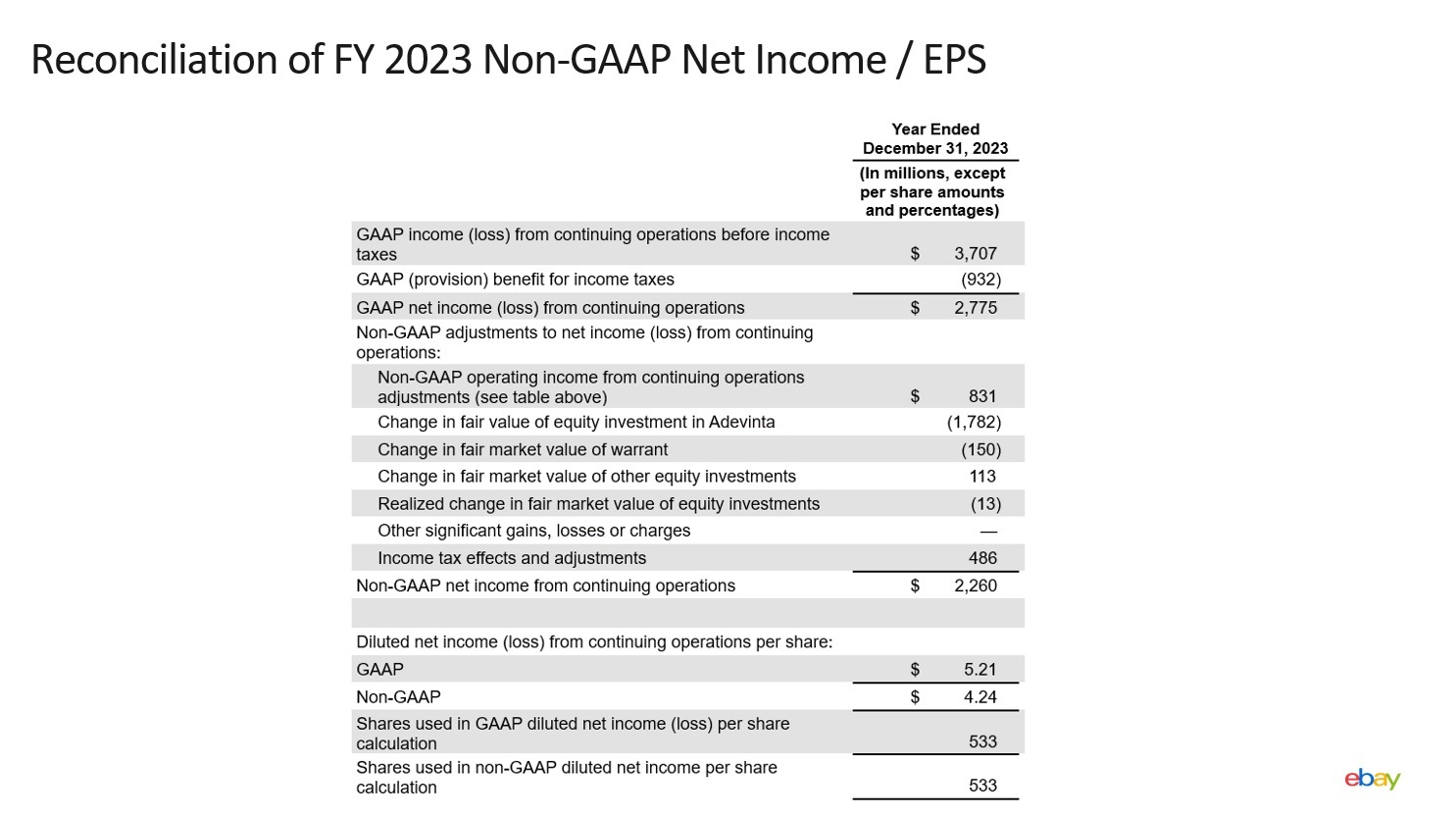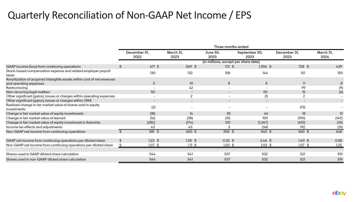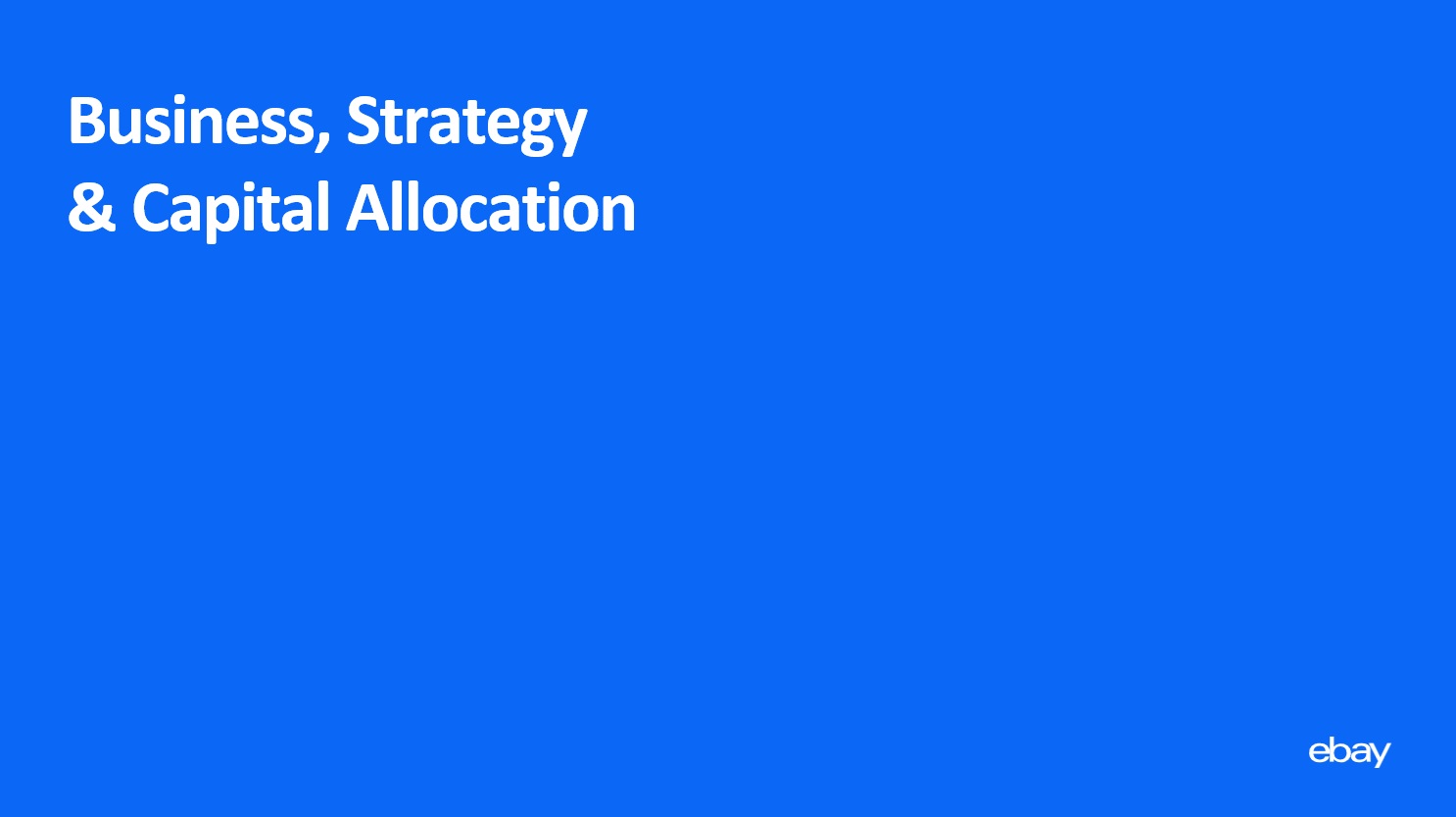 Disclosures © 2024 eBay. All rights reserved. Confidential and proprietary. This presentation contains non-GAAP measures relating to our performance. You can find the reconciliation of these measures, except for FX-Neutral (“FXN”) basis, to the nearest comparable GAAP measures in the appendix at the end of this presentation. All growth rates represent year-over-year comparisons, except as otherwise noted. For numbers in this presentation provided on an FXN basis, we calculate the year-over-year impact of foreign currency movements using prior period foreign currency rates applied to current year transactional currency amounts excluding hedging activity. This presentation contains forward-looking statements relating to, among other things, the future performance of eBay Inc. and its consolidated subsidiaries that are based on our current expectations, forecasts and assumptions and involve risks and uncertainties. These statements include, but are not limited to, statements regarding the future performance of eBay Inc. and its consolidated subsidiaries, including management’s vision for the future of eBay and our ability to accomplish our vision, the future growth in our business, market opportunities and anticipated growth thereof, the effects and potential of current and contemplated strategic initiatives and offerings, our stockholder engagement activities, our corporate governance and risk oversight activities, our executive compensation priorities and our ability to attract, retain and motivate employees, our environmental, social and governance commitments and priorities, operating efficiency and margins, reinvestments, capital allocation, dividends and share repurchases. Actual results could differ materially from those expressed or implied and reported results should not be considered as an indication of future performance. Factors that could cause or contribute to such differences include, but are not limited to fluctuations in, and our ability to predict, our results of operations and cash flows; our ability to convert visits into sales for our sellers, attract and retain buyers and execute on our business strategy; our ability to compete in the markets in which we participate; our ability to generate revenue from our foreign operations and expand into international markets; the impact of inflationary pressure, fluctuations in foreign currency exchange rates, increasing interest rates and geopolitical events such as the ongoing wars in Ukraine and in Israel and Gaza, including the related disruptions to international shipping in the Red Sea; our ability to keep pace with rapid technological developments or continue to innovate and create new initiatives to provide new programs, products and services; our ability to operate and continuously develop our payments system and financial services offerings; the impact of evolving domestic and foreign government laws, regulations, rules and standards that affect our company, our business and/or our industry; our reliance on third-party providers; our ability to protect or enforce our intellectual property rights; our ability to deal effectively with fraudulent activities on our platforms; the impact of any security breaches, cyberattacks or system failures and resulting interruptions; our ability to attract, retain and develop highly skilled employees; our ability to accomplish or accurately track our disclosures related to our environmental, social and governance goals; current and potential litigation and regulatory and government inquiries, investigations and disputes involving our company or our industry; our ability to generate sufficient cash flow to service our indebtedness; the impact of evolving sales and other tax regimes in various jurisdictions and anticipated tax liabilities; and the success of our pending or potential acquisitions, dispositions, joint ventures, strategic partnerships and strategic investments. The forward-looking statements in this presentation do not include the potential impact of any acquisitions or divestitures that may be announced and/or completed after the date hereof. More information about factors that could affect our operating results is included under the captions “Risk Factors” and “Management’s Discussion and Analysis of Financial Condition and Results of Operations” in our most recent Annual Report on Form 10-K and subsequent Quarterly Reports on Form 10-Q, copies of which may be obtained by visiting our Investor Relations website at https://investors.ebayinc.com or the SEC’s website at www.sec.gov. All information in this presentation is as of June 5, 2024. Undue reliance should not be placed on the forward-looking statements in this presentation, which are based on information available to us on the date hereof. We assume no obligation to update such statements. References in this presentation to our website and additional reports or information contained on our website are for information purposes only and are intended to provide inactive, textual references only. The information on our website, including the information contained in our reports, is not part of this presentation and is not incorporated by reference into this presentation.