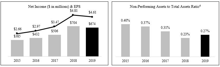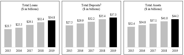 | · | Record Loans: Total loans grew $2.4 billion, or 7.4%, to a record $34.8 billion as of December 31, 2019, from $32.4 billion as of December 31, 2018. |