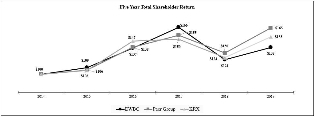 We believe that the information provided in “Compensation Discussion and Analysis” beginning on page 29 demonstrates that our executive compensation program was designed appropriately and is working to ensure management’s interests are aligned with our stockholders’ interests to support long-term value creation. The sustained success of the Company’s customer focus and bridge banking model between East and West is reflected in the following key metrics: