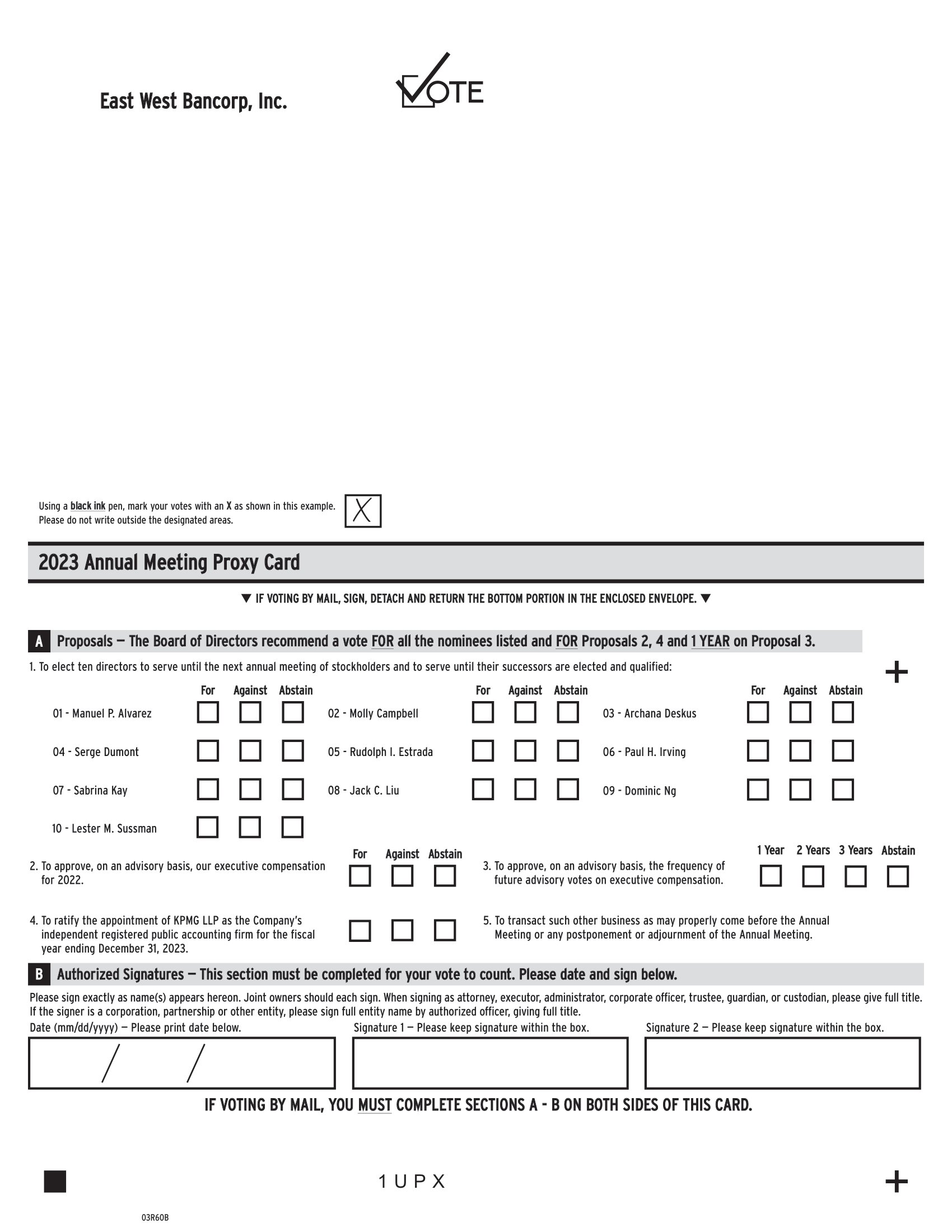 | 3 | EAST WEST BANCORP 2023 PROXY STATEMENT |