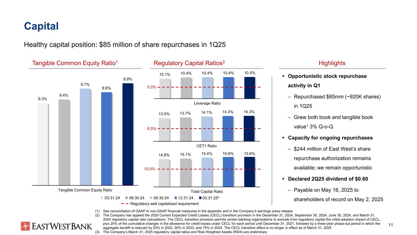 1Q 25 East West Bancorp, Inc. 1Q Earnings Presentation April 22, 2025