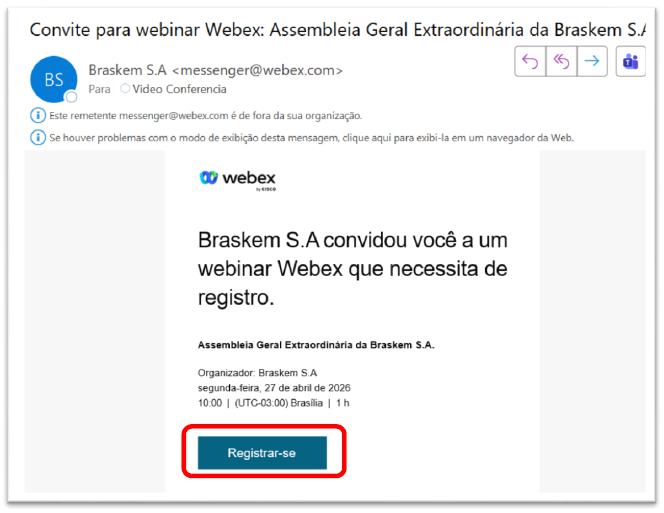 The shareholders of BRASKEM S.A. (“Shareholders” and “Company”, respectively) are hereby called to meet at an Extraordinary General Meeting, in an exclusively digital manner, pursuant to article 5, paragraph 2, item I, and article 28, paragraphs 2 and 3, of CVM Resolution No. 81, (“CVM Resolution 81”), to be held on April 27, 2026, at 10:00 a.m., through digital platform Webex (“Digital Platform” and “Meeting”, respectively), to resolve upon the following Agenda:
